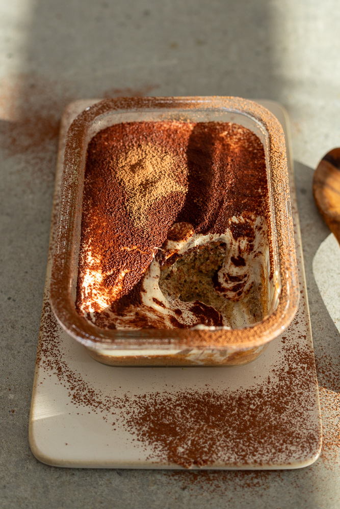 Es schmeckt wie ein klassisches Tiramisu, kommt aber komplett ohne Zucker, Gluten und leere Kalorien aus. Stattdessen liefert es hochwertiges Eiweiß, sättigt nachhaltig und hält den Blutzucker stabil. Genau deshalb ist es bei uns nicht nur Dessert, sondern genauso Frühstück, Post-Workout-Snack oder ein leichtes Abendessen.