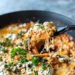 Ich verrate dir ein Geheimnis: Egal ob Grünkohl, Petersilie oder Spinat – mache UNBEDINGT ein Pesto dazu! Gib das Pesto über den low carb Kürbis Nudel Auflauf und rühre dann um, bevor du es auf den Tellern anrichtest. Ich hätte es vorher nicht für möglich gehalten, wie viel besser dieses gesunde Familiengericht mit einem Pesto schmeckt.