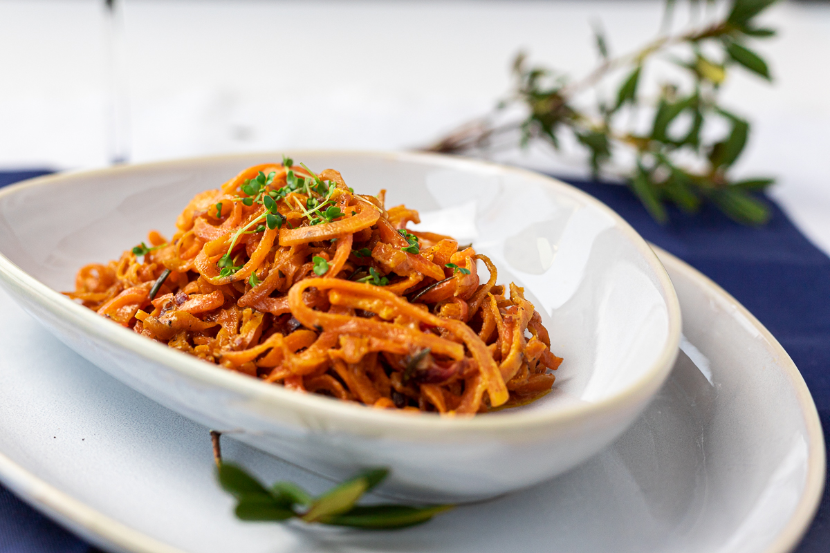 - Süßkartoffel-Spaghetti Carbonara low carb & glutenfrei
